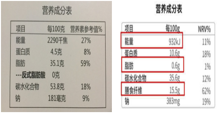 小tip: 营养素含量比较声称是指能量或者某营养素与基准食物或者参考数值相比“减少”或“增多”的声称。