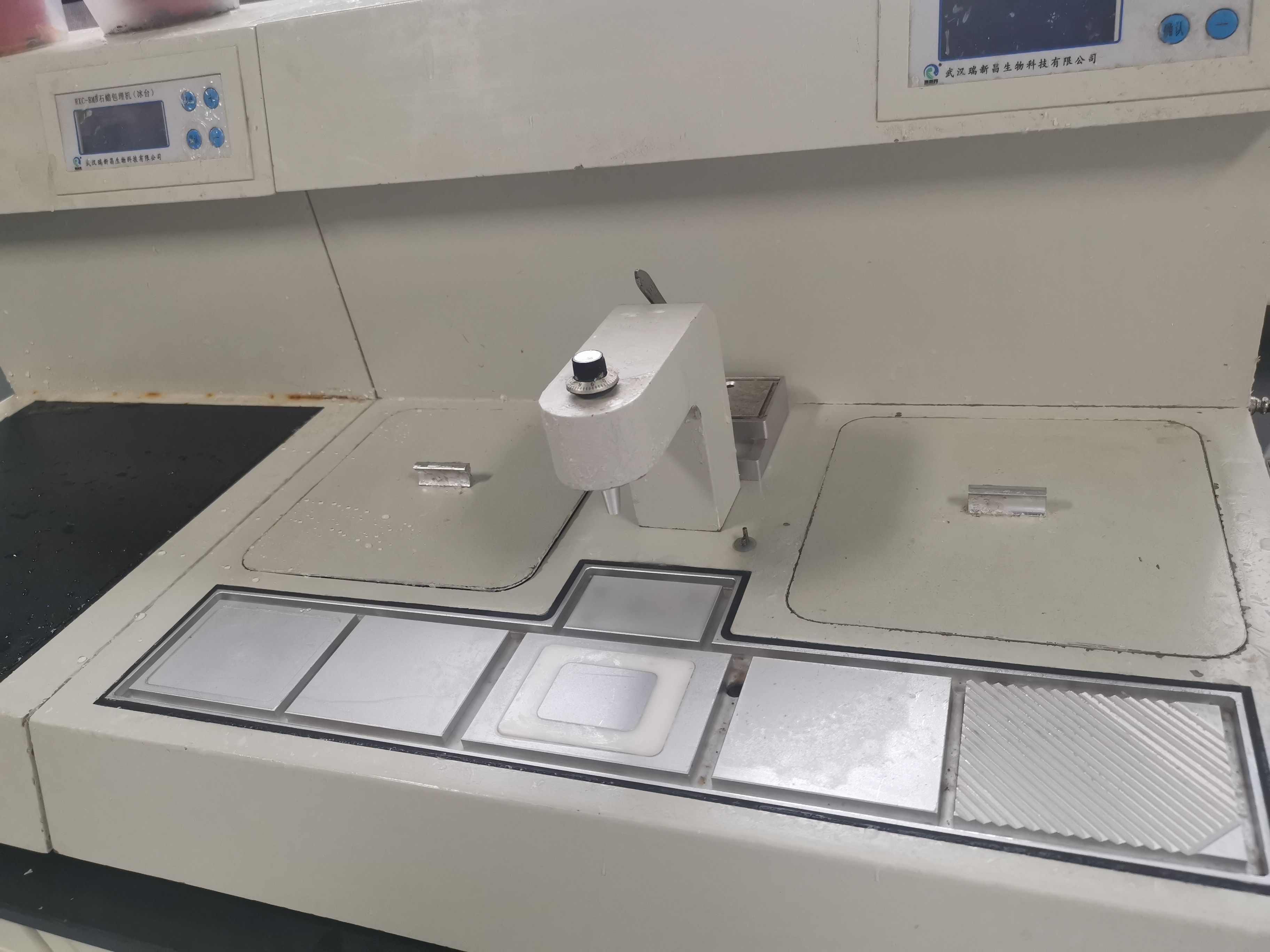 切好的片子是是透明的,下一步需要进行HE染色。为了防止掉片,每张切片在染色之前需要烤片20-30分钟再进行染色。