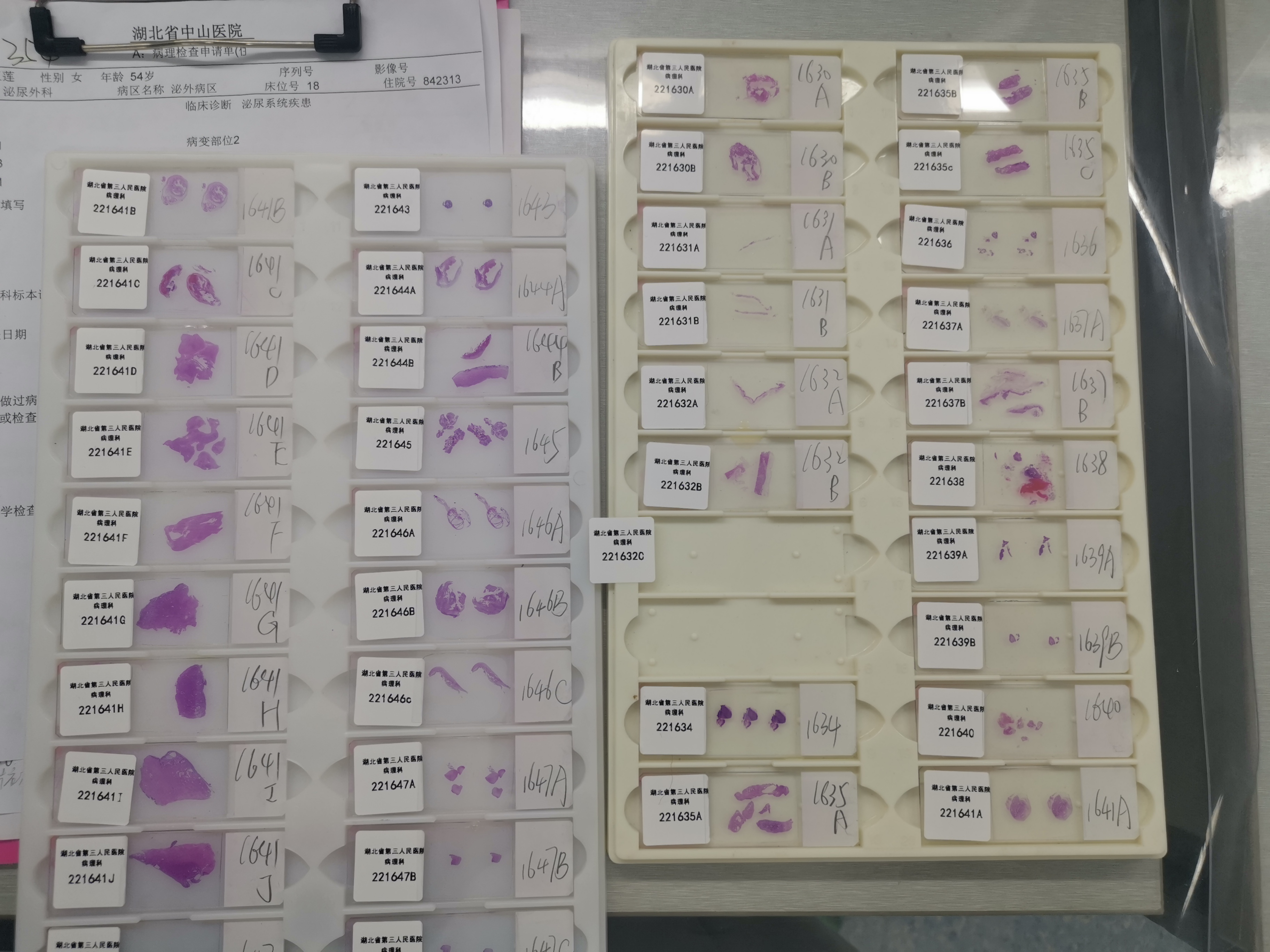 病理标本有肠子、乳腺、甲状腺、胃组织、卵巢、子宫、皮肤包块等。