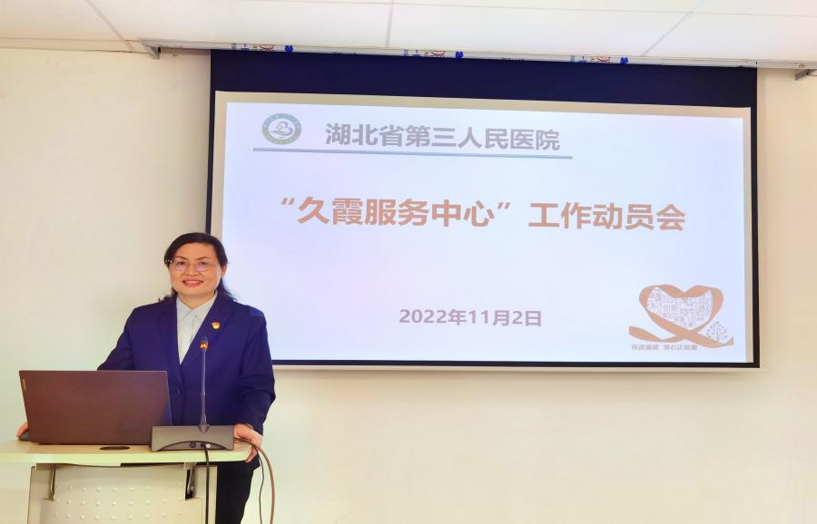 11月2日,湖北省第三人民医院(湖北省中山医院)在仁和楼组织召开打造“久霞服务中心”工作动员会,会议由护理部主任林双宏主持。