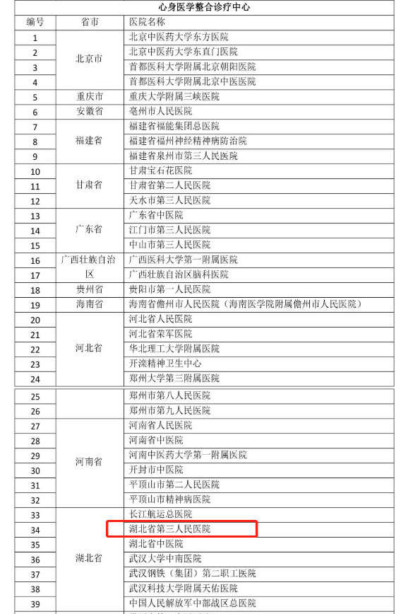 喜报!湖北省第三人民医院荣获国家级“心身医学整合诊疗中心”