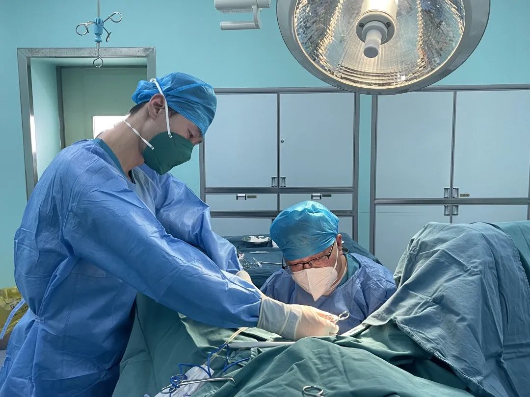 经救护车转运,周军主任顺利接诊到患者,查体发现患者尿道外口后壁脱出了部分黏膜,约1~1.5cm,遮挡尿道外口,诊断为女性尿道粘膜脱垂,在临床上较为罕见。由于有明显的临床症状,周军主任带领团队艾文振医生为患者进行了尿道口病损切除术和尿道口成形术,手术历时45分钟,术后患者恢复良好,目前已康复出院。