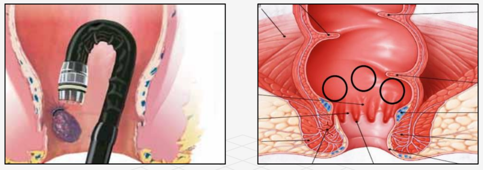 内镜下套扎术包括痔核套扎和痔上套扎。是应用橡皮圈对内痔进行弹性结扎的一种方法,其原理是通过套扎器将内痔痔核或痔上黏膜吸引后释放橡皮圈套扎内痔的基底部或者痔核上方黏膜,利用橡皮圈持续的弹性束扎力阻断内痔的血液供给,造成痔核组织缺血坏死并脱落,以及产生向上提拉效果。