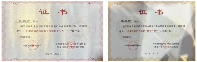 湖北省第三人民医院儿童康复科主任吴兆芳、言语语言组长王美玲获评儿童言语语言综合干预学科带头人及骨干