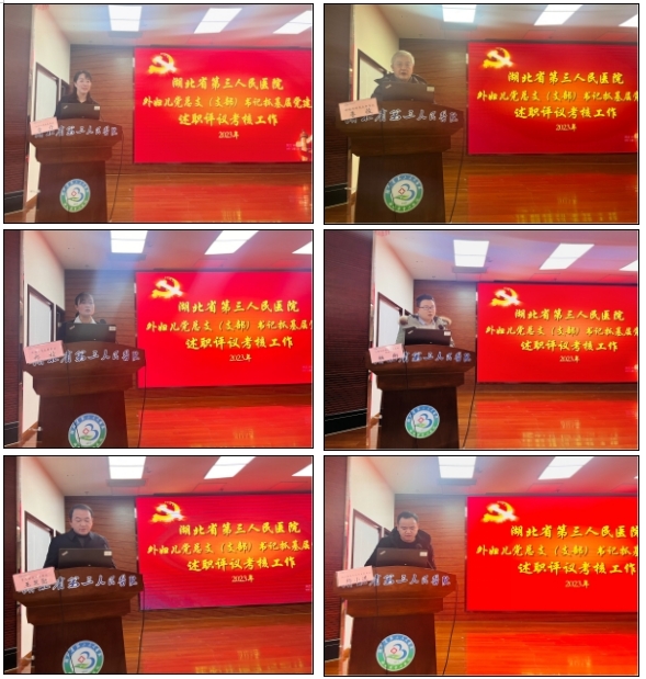 党总支书记雷丹及13名党支部书记依次就2023年度抓基层党建工作情况进行述职汇报,各位书记紧扣职责、紧贴亮点、盯紧短板不足,围绕学习贯彻习近平新时代中国特色社会主义思想和党的二十大精神、党建与业务相融合、抓牢意识形态和党风廉政建设等方面进行全方位阐述,提出努力方向和下一步举措,集中反映了一年来抓党建工作的生动实践,展示了医院党建工作的良好成效。