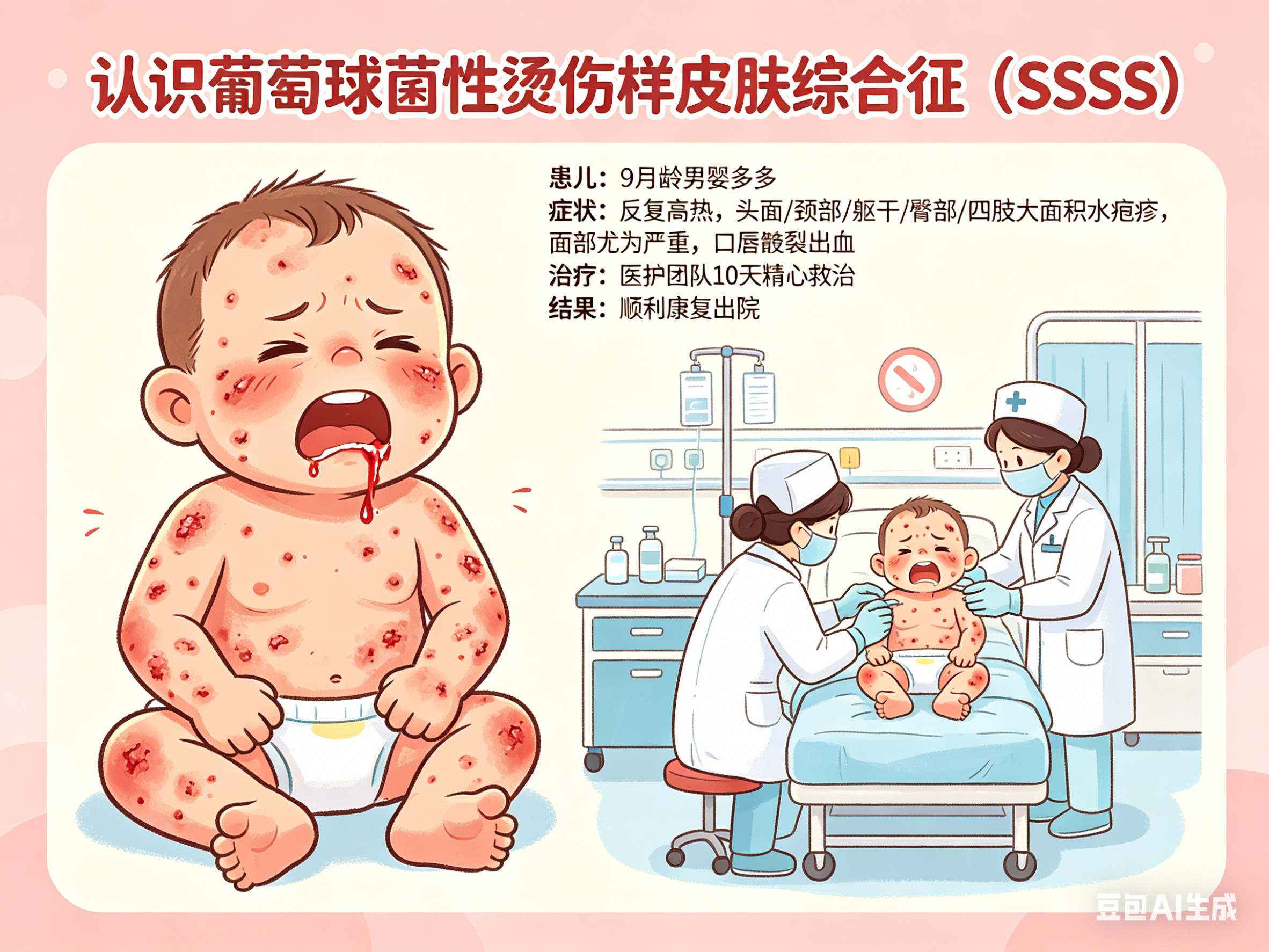 葡萄球菌性烫伤样皮肤综合征(SSSS)是一种严重的皮肤感染疾病,它是由金黄色葡萄球菌产生的毒素引发的,这种病在婴幼儿和免疫功能低下的人群中比较常见。